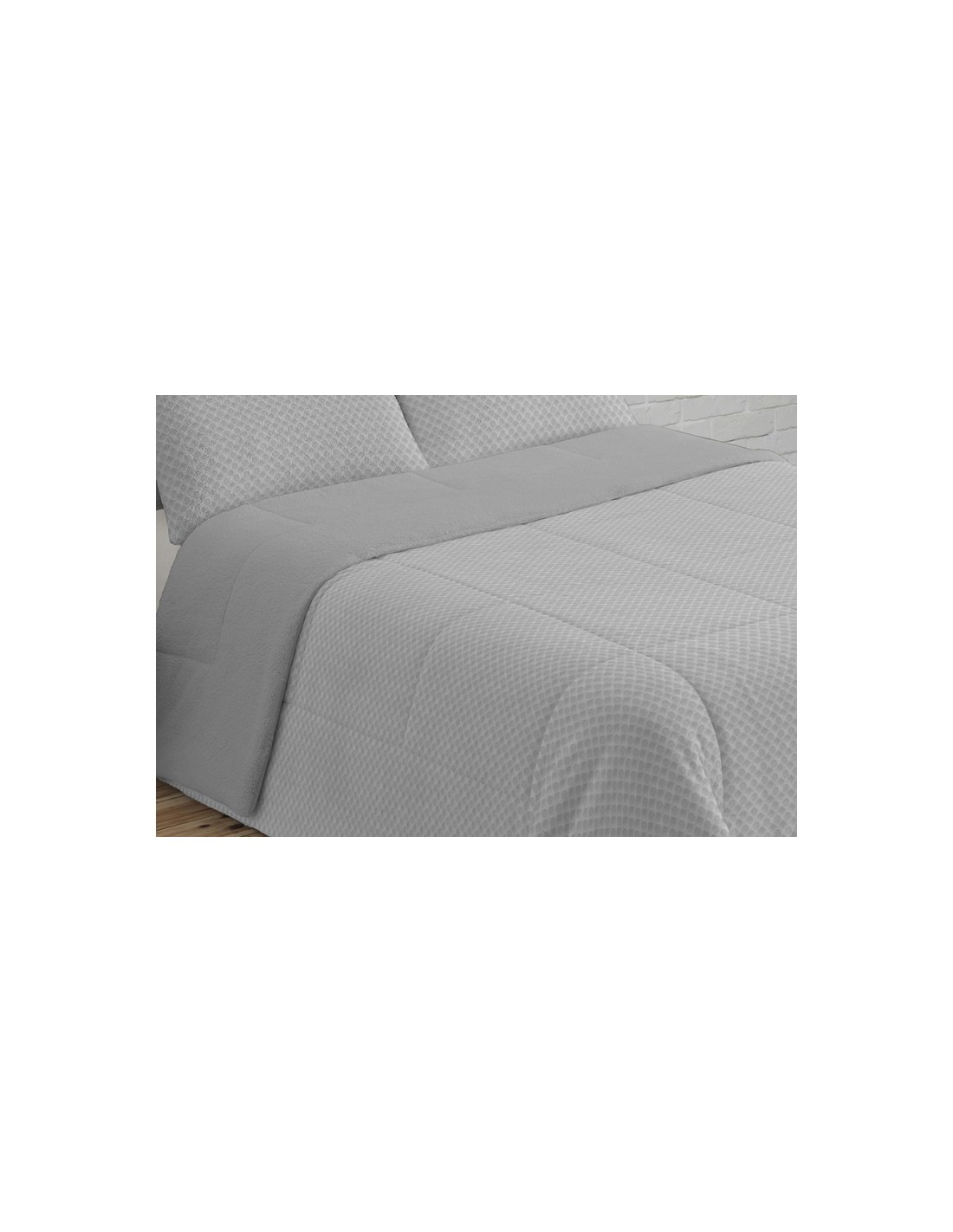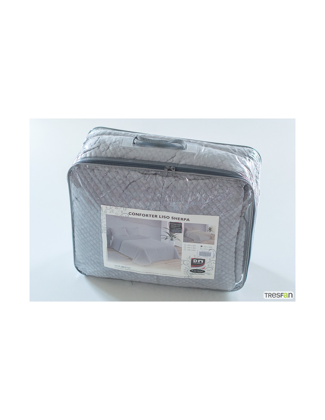 Edredón comforter confeccionado con tejido de sedalina en la cara principal y sherpa borreguito a tono en el reverso de la marca DN moda hogar.